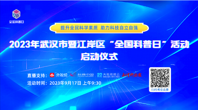 为落实《关于新时代进一步加强科学技术普及工作的意见》和《全民科学素质行动规划纲要(2021-2035年)》,深入宣传习近平总书记对科技创新和科学普及的战略擘画,围绕服务科技创新和经济建设,立足公众所需,提升科学素质,、中共江岸区委、江岸区政府联合举办2023年武汉市暨江岸区“全国科普日”活动启动仪式。