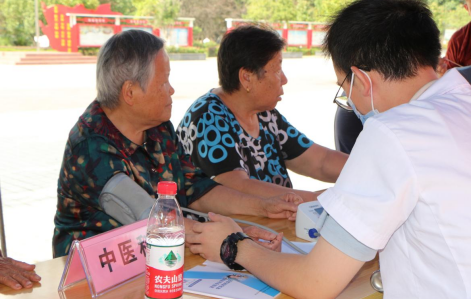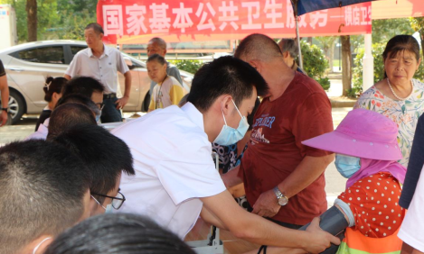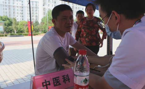 建国社区广场位置开阔,是居民们平时健身娱乐的活动场所。活动当天,身着白大褂的医生团队一到广场就吸引住了周围居民,居民们纷纷凑过来询问有什么项目和科室。等医疗器械准备就绪,义诊活动便拉开了序幕。