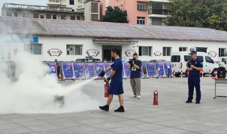随后的消防安全演练活动中,来自区消防救援大队的消防员给同学们和辖区群众讲解了火灾发生时的自救知识,示范了灭火器的使用方法,并模拟火灾浓烟现场,引导同学们捂口鼻、弯腰快速穿过浓烟,让大家学习和掌握必要的消防安全知识。