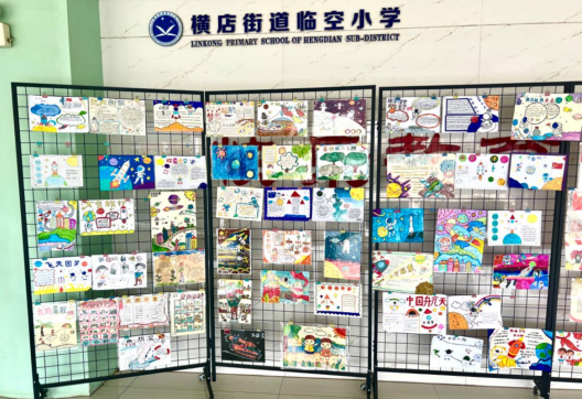 观看完纪录片后,老师布置了太空主题手抄报任务。同学们耗时两天的构思与绘制,一幅幅色彩丰富、内容充实的手抄报得以呈现,经过各班老师精心评选,其中的优秀作品于20日至23日期间在校园作品角展示。