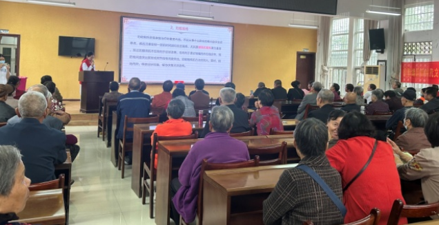 现场活动分为健康讲座和免费义诊两个部分进行。本次讲座邀请到了东西湖区中医院的医师沈沁担任讲师,围绕着“保护腰椎,守护健康”这一主题,详细地为老人们介绍了脊柱的组成,同时针对老年人常见病——腰椎间盘突出,从其成因、预防措施、注意事项以及改善方法等方面进行了讲解,传播中医药防治疾病和养生保健知识,倡导健康生活理念,提醒居民养成良好生活习惯,拥有幸福的生活。现场,沈沁医师还带领着老人们进行了保健操的动作教学。整场讲座掌声不断,精彩纷呈!