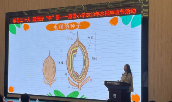一年最是秋光好,五谷丰登满廪仓!在9月23日第六个中国农民丰收节到来之际,我们欢聚一堂,共同庆祝愿景小学校园里的水稻丰收节,为培养学生关爱农田、感恩农民的意识,让学生真实地参与到农耕活动,增强学生的实践能力和团队合作意识,特此举办科普讲座、采摘水稻、稻米实验、美食品鉴等一系列活动。