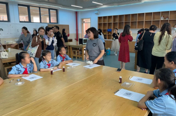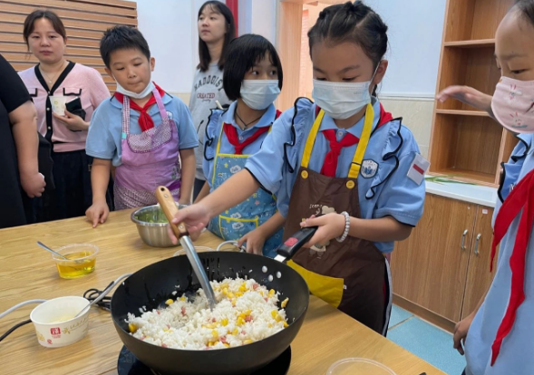 四楼的劳技室里,有一部分同学在科学老师的带领下在做稻米实验,有一部分在制作着蛋炒饭,忙得热火朝天。专家领导和家长们还品尝了同学们的蛋炒饭,纷纷表示味道很不错!