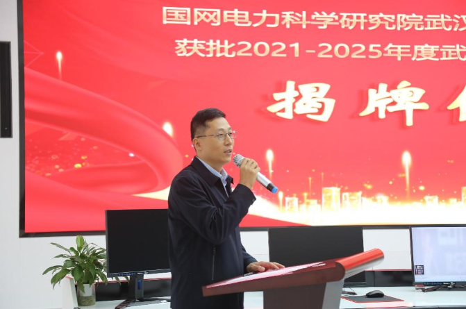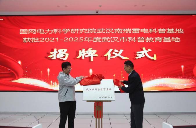 副主席刘志武与科普基地负责人谷山强一同为国网电力科学研究院武汉南瑞雷电科普基地揭牌。