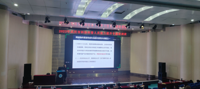 市科协网讯 为进一步加强科普工作,提升科普人员能力素质,有效增强武汉城市科普能力,助力武汉建设具有全国影响力的科技创新中心,11月16日,2023年第二期科普人员能力提升专题培训班在中国地质大学逸夫博物馆开班。党组成员、副主席郑华出席开班仪式并作动员讲话,中国地质大学(武汉)地理与信息工程学院副院长关庆锋致辞,开班仪式由市科协科普部副部长吴宇明主持。