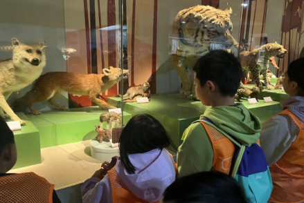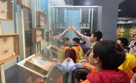 进入博物馆,在讲解员的带领下,小朋友和家长们共同徜徉在知识的海洋。博物馆基本陈列以“自然藏珍 文明瑰宝”为展示主题,以“生命科学”为核心展示内容,展览分序厅、蛰鸣蛱翩(昆虫)、野性自然(野生动物)、温驯家园(畜牧兽医)、本草芳华(植物)、大地宝藏(土壤地矿)六个单元。