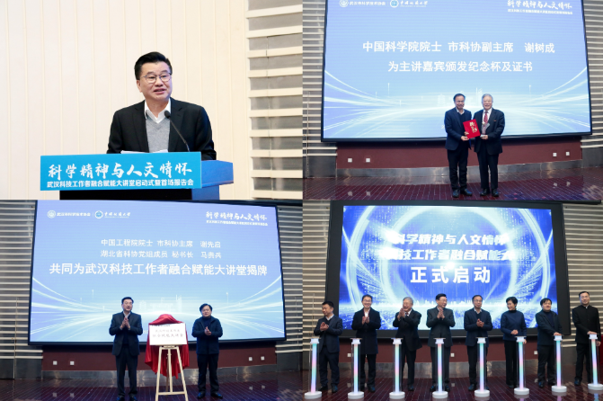 市科协网讯 11月28日上午,“科学精神与人文情怀——武汉科技工作者融合赋能大讲堂”启动式暨首场报告会在中国地质大学(武汉)逸夫博物馆报告厅举行。中国工程院院士谢先启,中国科学院院士谢树成参加活动。首场报告会特别邀请北京大学中文系教授、博士生导师程郁缀作精彩报告。市科协党组书记、副主席李定君主持启动仪式。