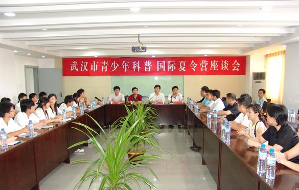 9月2日上午,“2007年武汉市青少年科普国际夏令营”座谈会在武汉科技馆举行。国际夏令营全体营员圆满结束了为期9天赴日本的参观考察和学习交流活动。座谈会上,营员们交流了活动心得,大家认为通过这次活动开阔了视野,吸收了新的知识,培养了国际化意识,满载而归。
