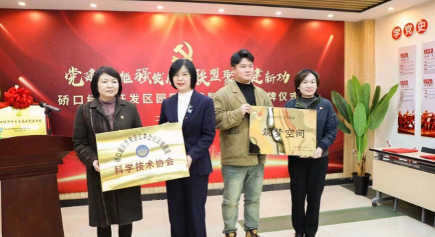 11月24日,硚口开发区汇丰企业天地园区科学技术协会成立大会暨第一次代表大会召开,汇丰企业天地园区科学技术协会揭牌成立。硚口经济开发区管委会副主任蒋琳、汇丰企业天地园区企业金东方实业集团董事长王晓燕,金东方实业集团股份有限公司、重庆医药集团湖北全兴医药有限公司、武汉坤达安信息安全技术有限公司、武汉斯艾特科技股份有限公司会员代表参加成立仪式。区科协党组书记、主席袁宏玲、副主席佘德孝参加活动。