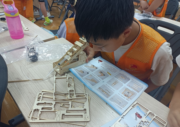 科普知识讲解完成后,大家已经迫不及待的想要开始制作消防云梯车啦,老师先进行了步骤的示范,同学们就紧锣密鼓的开始动手了,制作过程中,年级大一点的同学帮助年级小一点的同学制作,场面是既热闹又有爱。制作完成后大家纷纷向老师展示自己的云梯车。