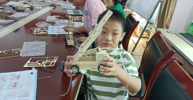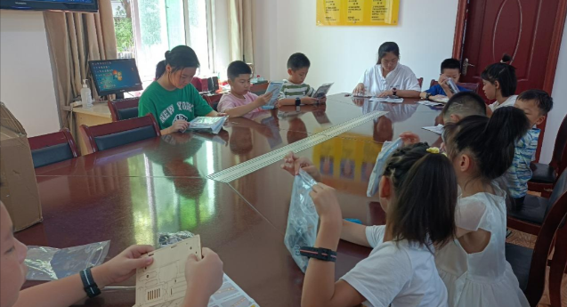 在手工活动环节,小朋友们非常认真,根据说明书一步步组装。同时,老师在现场协助小朋友们,帮助检查和指导,解决他们组装过程中遇到的一些问题。