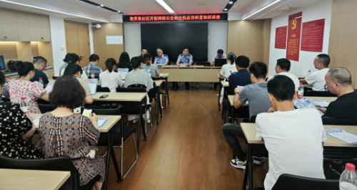 为进一步加强居民对电信诈骗的防范意识,提高对电信诈骗的鉴别、自我保护能力,营造全民反诈的浓厚氛围,2023年9月6日上午,荣华街道集贤里社区记王哲、管段民警曾志华、张敏在社区新时代文明实践站,开展“防范于心 反诈于行”网络安全和全民反诈科普知识讲座,积极向辖区居民推广下载“国家反诈中心APP”小程序,增强广大居民群众反诈骗意识,防止辖区居民上当受骗。