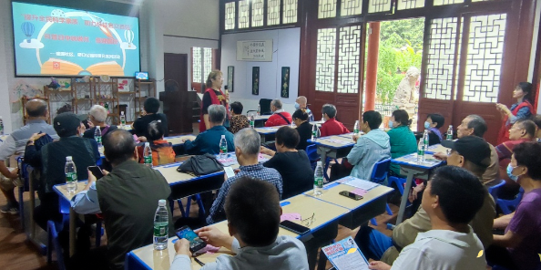 满园飘香的丹桂,如梦似幻的复古建筑在加上红红火火的国旗和气球,给建国社区的居民会就一幅诗情画意,美不胜收的节日氛围。2023年9月22日上午9:30,建国社区携手硚口公园、湖北日报、国药福芯之家在尚和书院开展别开生面的科普庆中秋,迎国庆的主题科普日系列活动。