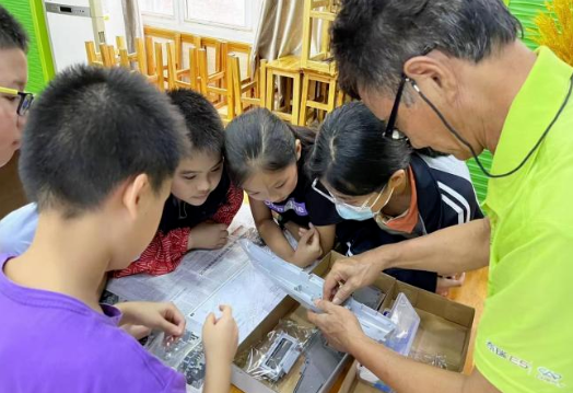 变电社区联合新合村小学的老师也带领着同学们用灵巧的双手,组装起军舰航模,他们专注的眼神,将是打开科技大门那把无形的钥匙。