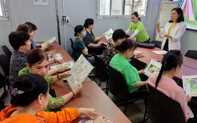 纽扣,是生活中再普通不过的小物件了,但是通过创意的表达,可以变成一朵朵色彩缤纷的纽扣花。分发制作材料后,工作人员讲解了“纽扣花”的制作方法,引导大家通过动手实践,实现自已的创意。同时,讲述环保的意义,呼吁大家积极参与环保行动。现场气氛热烈,粘贴在花瓶上,五彩缤纷,忙得不亦乐乎。制作完成后,阿姨们分享自已的作品。