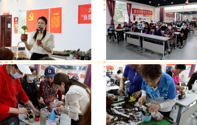 科普老师为社区居民讲解多肉科普知识,学习多肉种植方法、养护技巧以及多肉盆栽的造型搭配。