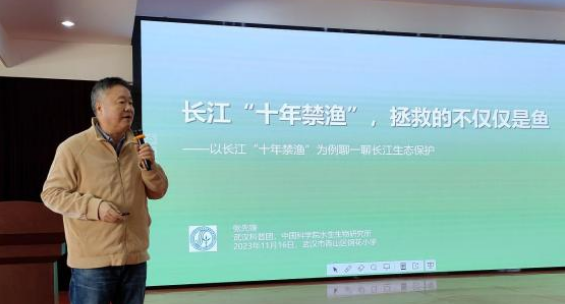 2023年11月16日上午,中国科学院水生生物研究所研究员,武汉科普团团长,中国科学院水生生物博物馆前馆长张先锋教授在钢花小学园林路校区报告厅开展了一场知识与趣味并重的重要科普学术大讨论——《长江“十年禁渔”,拯救的不仅仅是鱼》。