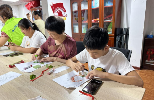 植物拓印书签的制作过程通过将植物的鲜花或叶子放置在特定纸张上,用笔或刷子轻轻涂抹,使植物的形状和纹理完整地呈现在纸上。这种简单而有趣的活动不仅锻炼了居民们的动手能力和观察能力,也加深了他们对植物的了解与关注。
