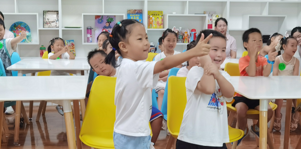 老师给小朋友们讲关于夏天的绘本故事《太阳想吃冰淇淋》《快乐的夏天》,绘本里活泼鲜艳的的颜色和童稚轻松地画面吸引了小朋友们的注意,太阳和小动物们一起想办法吃冰激凌的情节,引发了小朋友的热烈讨论。一个个充满想象力的暖心故事,让小朋友们沉浸在善良和童真的世界里,体验和感受齐心协力帮助别人的快乐。