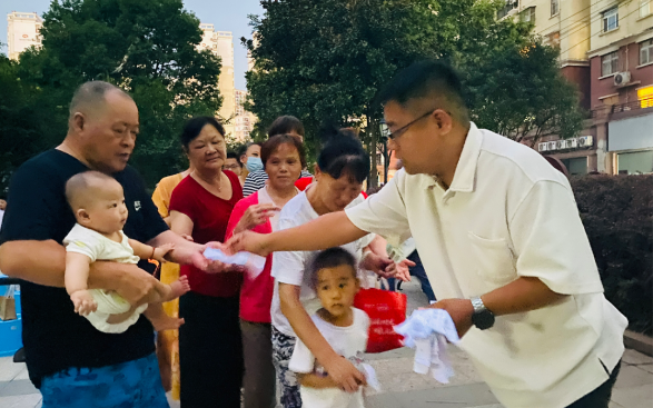 活动现场,社区观影区域,老人、儿童早早地就到社区小广场寻找到最佳的观影位置,等待着电影放映。电影放映前,社区志愿者们组织小朋友们开展红色趣味问答活动,答对问题可以获得“零食大礼包”,整场活动的气氛被拉到最高,志愿者们还为居民们准备了水果拼盘、酸梅汤等小食。