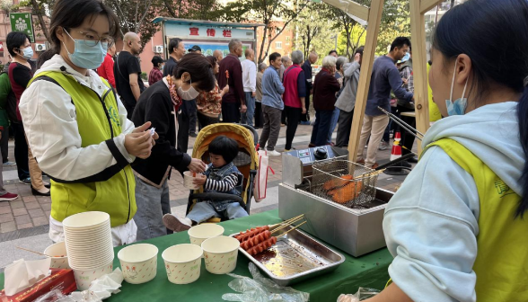 除此之外,还有“爱心炸串摊”、“投掷沙包打靶”、“趣味贴鼻子”和“趣味套圈”等活动摊位让本次科普集市氛围更为热烈,时不时能听到阵阵喝彩声,欢声笑语不绝于耳。
