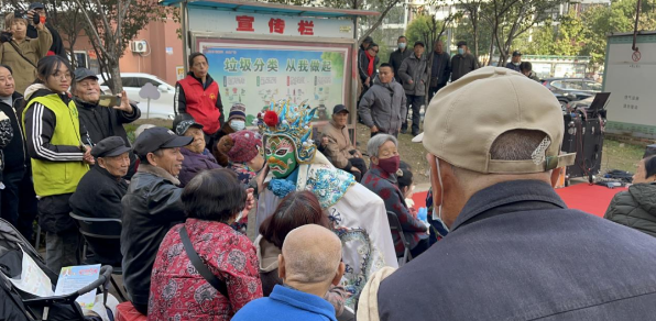 随后,科普老师为现场的国企退休职工科普中国非物质文化遗产“川剧变脸”的由来及发展历程,在科普过后,社区邀请到了川剧“变脸”艺术大师带来中国非遗传统节目《川剧变脸》表演,在一阵锣鼓声中出场。他采用小步、连环步、交叉步等走法展现出传统戏曲的艺术感染力,韵味十足,获得了满堂喝彩。变幻莫测的6个脸谱手法娴熟,将传统文化艺术的魅力表现得淋漓尽致,为社区国企退休职工献上一场精彩纷呈的文化科普艺术盛宴,随后又邀请“湖北大鼓”表演艺术家为社区国企退休职工表演演奏。