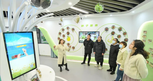 走进微型种子科普馆,位于正中央的一棵“生命之树”映入眼帘。树干上科普展板与电子显示屏交替呈现,树的四周是种子文图科普墙、种子实物展示区、播放介绍种子知识视频的显示屏等。在种子实物展示区,按下每类种子旁的按钮,就可以随时观看这类种子的知识介绍视频。“在这里,观众不仅能够通过图文展板了解到农耕文化的发展历程,还能通过实物、视频等方式学习二十四节气对农业生产的影响、学习种子的各种知识等。”农科院社区党总支书记徐秋思说。
