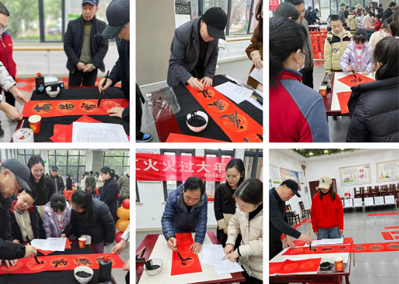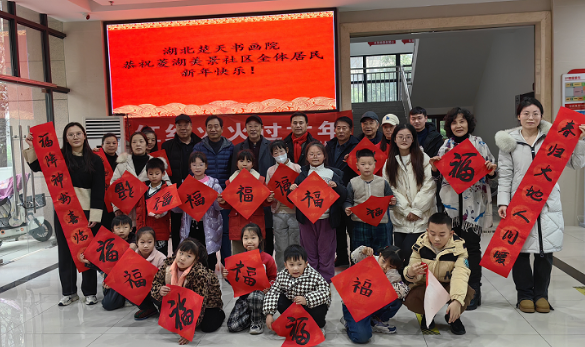1月31日,湖北楚天书画院6位书法名家走进菱湖美景社区开展新春送祝福活动,现场挥毫泼墨,以书法为媒介,把承载美好祝愿的对联、“福”字送给社区居民,祝居民们新年快乐,红红火火过大年。