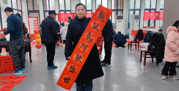 收到书法老师们现场写的对联和“福”字后,居民们纷纷表示外面卖的春联虽然图案精致漂亮,但老师们现场手写的对联有人气,年味更浓了,还增加了邻里之间的情谊。