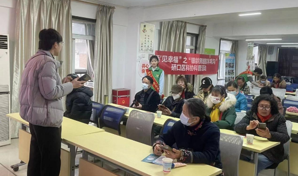 为助力老年人融入数字时代,充分享受改革发展的成果,增强老年人在科普文化需求方面的获得感、幸福感、安全感,帮助中山社区内的银龄老人更好地融入数字时代。1月18日,硚口区科协联合荣华街中山社区,开展以“‘硚’见幸福”之“银龄跨越数字鸿沟”为主题的科技助老活动。