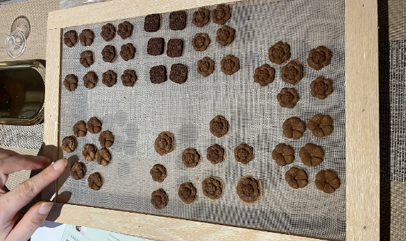 经过20分的充分发酵融合,大家便开始制作梅花香片的最后一个环节。每个人挑选了自己喜欢的花形,刷上油,然后将香料嵌入模型中,待成型后,将香料拍出,一朵朵精致的小梅花、小桃花、小牡丹、小中国结等便呈现在了大家面前,看到自己的制香成果,在场的每一位香文化爱好者都充满喜悦。