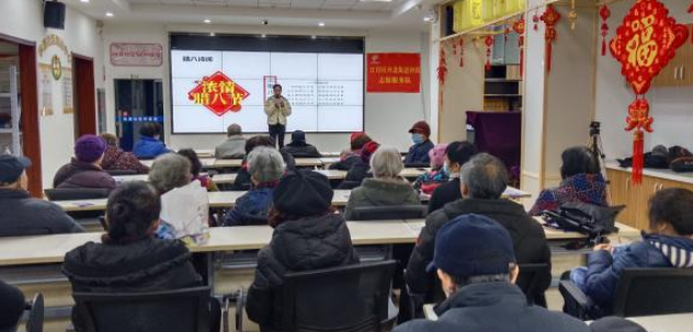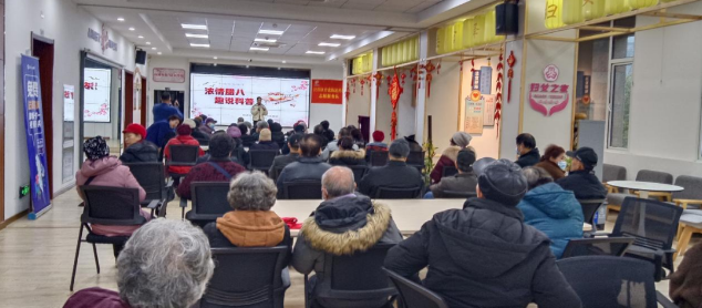农历十二月初八是我国历史悠久的传统节日“腊八节”。俗话说:“过了腊八就是年。”活动中,科普志愿者就腊八节的来源、节日习俗、饮食习惯为大家做了详细的介绍。居民们跟着主持人一起吟诵“冻木知春早,晴风卷雾昏。”活动现场其乐融融。