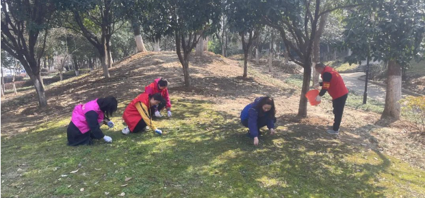 活动通过微信群推送植树宣传资料,发放植树节宣传单及倡议书等形式,向居民讲解植树节的由来及意义,宣传生态文明理念,强化居民环保意识,呼吁居民从身边的小事做起,自觉维护社区绿色环境,成为绿色环保生活方式的宣传者、参与者、践行者,为建设绿色社区共同努力。活动期间,志愿者自发行动,带着铁锹、夹子、扫帚等工具,深入吴家山公园开展环境卫生整治工作,集中清理绿化带中的垃圾袋、杂草,大家分工合作,每个人都积极投入到植树活动中,为树木松土、施肥、浇水和加固,兴致勃勃地投入到植树活动中。人人出力,日积月累,才能让我们的家园更加美丽。”“我们每个人要积极争当绿色参与者,爱护每一棵花草,力所能及美化家乡、美化环境。”劳动中大家真切的感悟,不仅是对于生活的美好愿望,更是对绿色未来的坚守与信念。