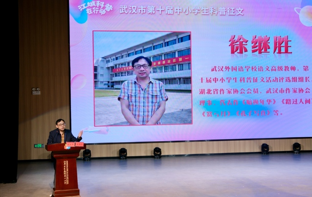 华中科技大学二级教授、博士生导师,教育部长江学者特聘教授、2024年第一季度“荆楚楷模”、2023年度“武汉最美科技工作者”周建新,武汉市文联党组成员、副主席陈菁,市科协党组成员、副主席张若光,市教育局副局长、党委委员张念强,武汉文旅集团党委副书记、董事刘军,市科协科普部负责人、三级调研员吴宇明,武汉科技报党支部书记、总经理陈金枝,本届科普征文活动评选组组长、武汉外国语学校语文高级教师、武汉市作协理事徐继胜以及各区科协主要负责人、各区教育局相关负责人出席典礼。
