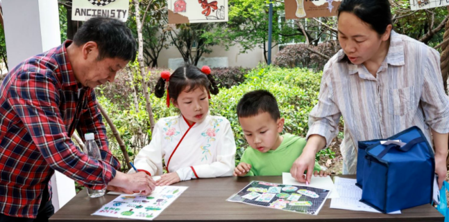 活动以亲子舞开场,一首《幸福拍手歌》点燃现场欢快氛围,随后,亲子共同上阵参与“亲子植树”“彩绘春天”“书写春天”“讲述春天”“才艺展示”等项目,在花坛里栽下小树苗,为社区环境增绿添美。