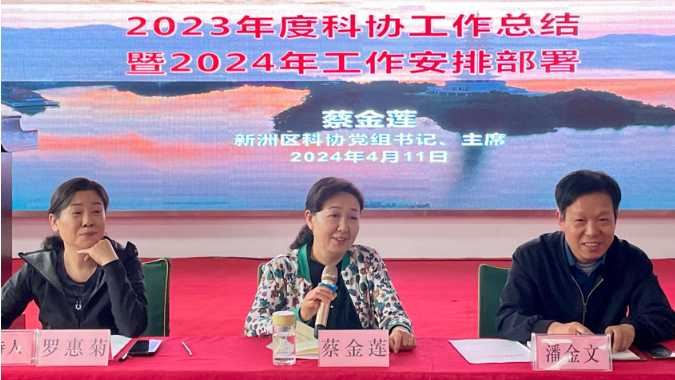 新洲区卫健局副局长、新洲区科协挂职副主席潘金文传达了《关于调整新洲区科普专家工作领导小组的通知》文件精神。区科协党组书记、主席蔡金莲总结了去年的科普工作成绩并部署了2024年全区的科普重点工作。