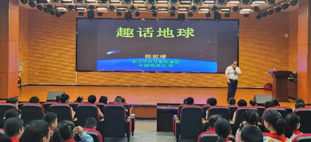 世界地球日即将来临,为深入学习宣传贯彻习近平生态文明思想,引导全社会树立“尊重自然、顺应自然、保护自然”的生态文明理念,动员全社会积极践行绿色低碳的生活方式,硚口区团结小学邀请中国地质大学(武汉)徐世球教授,为同学们开展《趣话地球》专题讲座。