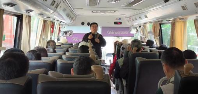 当天清晨,阳光明媚,洪山区狮子山街道玫瑰湾社区退休职工们早早在社区服务中心集合,统一乘坐大巴车前往目的地。活动开始,谢颖奇老师在大巴车上带领玫瑰湾社区退休职工们回忆经历过往,并通过唱歌的形式活跃热情氛围。《启程》、《奔跑》、《比天空还远》等一句句经典的歌词伴随着优美的音乐在大巴车中环绕,这些轻快音乐引起了玫瑰湾社区退休职工们对此次踏青的美好憧憬。