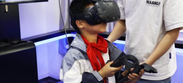 基地的安全体验馆内,在“翱翔之翼”科普志愿者余凯瑞的带领下,三年级学生潘泽辰头戴VR眼镜,双手各拿一个VR手柄,在液晶屏幕前旋转身体、左右比划。屏幕里显示的是一处火灾现场,而他正通过“全景式操纵”完成拨打119、关闭电闸、打湿毛巾、使用灭火器等任务,“沉浸式”体验逃生技巧。“太真实了!回想起刚才的现场还是有点怕,还好我成功逃脱。”他说。