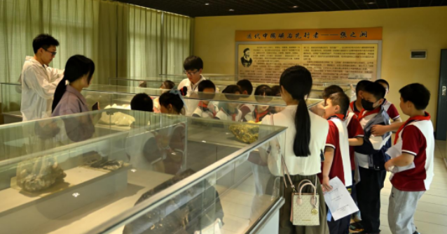 神秘莫测的陨石、自然雕琢的白玉石、直径达30cm的黄铁矿……地质标本陈列馆内,学生们见到了来自全国各地的上万件矿石标本,纷纷好奇地凑近观赏,争先恐后地向志愿者老师询问矿石背后的故事。
