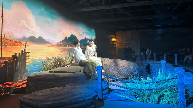随后,大家在武汉歌舞剧院观看了原创环境式驻演音乐剧《拜风》。长江江豚是国家一级保护动物,是反映长江生态环境好坏的“晴雨表”,武汉人亲切地把它叫做“江猪子”。江豚拜风,是在起风的天气,或者要下雨时,江豚会朝着起风的方向顶风出水,在江面上跃出优美的曲线。由武汉歌舞剧院出品的音乐剧《拜风》一经推出便备受江城民众的无限关注,这部以国家实施长江大保护为战略背景、保护江豚为切入点、符合当代青年人审美趣味的环境式驻演音乐剧,用其独特的气质感动着生长在长江边的人们。