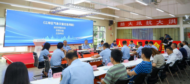 在自然灾害抢险救助桌面综合演练现场,应急指挥大屏正在实时播放灾害现场情况,指挥中心的领导根据情况紧急研判,下达指令。此次桌面推演以辖区遭遇入汛以来最强降雨为背景,按照《江岸区气象灾害应急预案》《江岸区自然灾害救助应急预案》,围绕预报预警、应对部署、抢险指挥、避险转移和安置救助等临战环节进行演练。各参演单位接收到防汛抗旱指挥部启动Ⅱ级应急响应的指令后,根据自身职责迅速组织行动,以人员抢救为第一要务,以保畅通、排险情、稳秩序为重点,紧急开展救援、救灾及维护社会秩序,保障基础设施等工作,各部门根据职能职责快速反应、高效协同、密切合作。