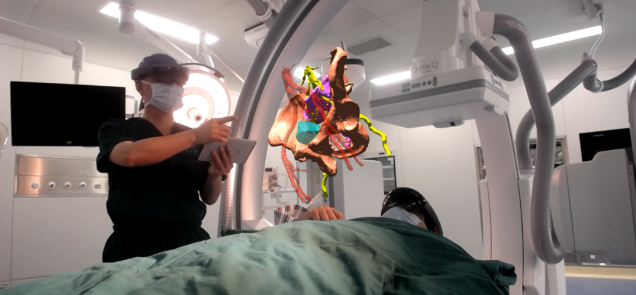 多年来,这项技术不断迭代成熟。一支标记笔从中国武汉隔空穿越到新疆手术台上,在一名骨折患者病灶部位的全息影像上圈圈点点,指导着从何处植钉、植入多深。指挥落刀的,不是手术室内的医生,而是远在武汉的协和医院骨科医生团队。这是2018年1月份,全球首例混合现实技术三地远程会诊手术的一个镜头。是一场由武汉协和医院总指挥、跨越3700公里的远程会诊手术。同时,横跨太平洋、相隔15000公里的美国弗吉尼亚理工大学学者也“亲临”手术室,参与细节讨论。医生佩戴炫酷的MR眼镜远程指导千里之外的手术现场。患者病灶部位的全息投影成像,精准地“悬浮”在医生眼前,还能用标记笔在“病灶”上圈圈点点,呈现出科幻大片一样的视觉效果。