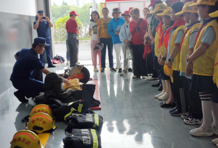 活动伊始,消防员详细介绍了消防战斗车辆以及各类装备器的使用方法。水罐泡沫消防车、云梯喷射消防车等高精尖设备令人大开眼界;防化服、避火服等各种新型的防护装备一一亮相。孩子们还亲身穿上防火服,感受消防员叔叔的辛苦,有个小朋友情不自禁的敬起礼,向他们致敬。
