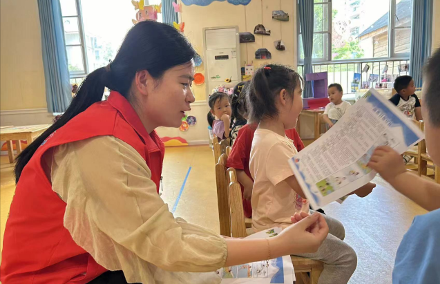 为进一步增强辖区幼儿安全意识,预防溺水事故发生。5月17日,径河街官塘角社区联合辖区启德幼儿园开展防溺水宣传活动。