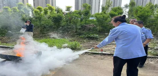 随后,工作人员现场模拟失火场景,让居民和物业工作人员亲身体验灭火方法。在大家的共同配合下“火情”终于被扑灭。除了宣传火灾扑救等知识外,工作人员还提醒在场的每个人,要关注身边时刻存在的安全隐患,比如:电线老化、充电器火灾、飞线充电等,强调防范火灾的重要性。