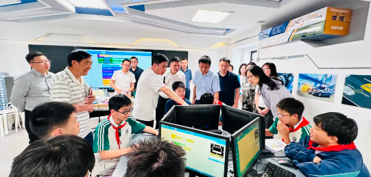 在吴家山第三中学,学校相关负责人结合学校科创空间特征,介绍了科创空间建设思路;围绕科普课程建设与实施和科普活动开展,重点介绍了科普教育路径。吴家山第三中学以“科创教育”为特色,通过“高起点引进、高标准建设、高规格呈现”模式开展科创教育,持续优化科创教育框架,完善和细化实施路径,全力开发优势智能,走向科技教育前列。