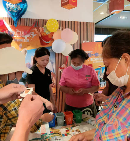 5月26日下午,杨园街道在融侨城麦当劳店开展“分类新时尚,低碳齐参与”主题科普宣传活动,街道、社区、志愿者等40余人参加.