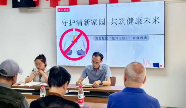 在这绿意盎然、万物生长的五月里,我们迎来了关注健康、呼吁戒烟的“世界无烟日”,为进一步加强控烟科普宣传,减少烟草危害,提升广大居民群众健康素养水平,5月30日,荣西社区紧扣时代脉搏、契合时代主题,开展了以“守护清新家园,共筑健康未来”为主题的科普宣讲活动,旨在深化广大居民对控烟重要性的认识,倡导文明、健康、绿色的生活方式,共同缔造一个健康宜居、和谐共融的生活空间。