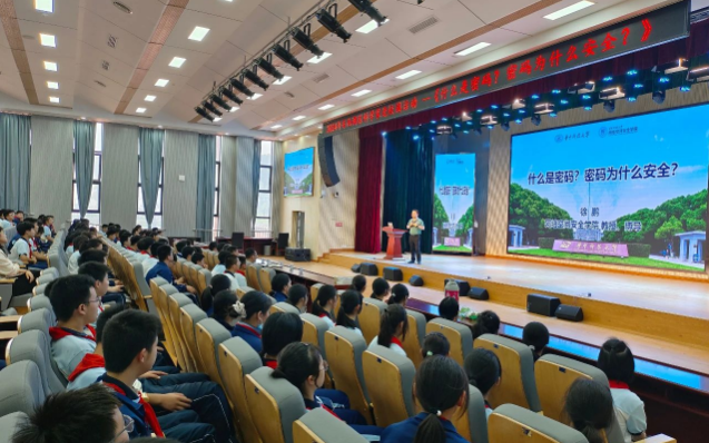 徐鹏教授作《什么是密码?密码为什么安全?》主题报告,徐鹏教授围绕“什么是密码”、“古代密码”、“现代密码”、“密码为什么安全”等逐一展开,首先,以通俗易懂的小故事展示 “藏头诗”、古代“阴书”所蕴藏的加密保护和安全认证的密码小知识,简单有趣、引人入胜,让同学们对密码产生浓厚的兴趣,并从实际生活出发,通过描述生活中的“安全”现象,让同学们了解密码的安全原理;随后,详细介绍了从古典密码、近代密码到现代密码的发展历程,解释其背后的大一统安全思想与规则,并结合具体密码知识,阐明这些思想与规则的具体体现形式;最后,深入浅出地普及了密码为什么安全。
